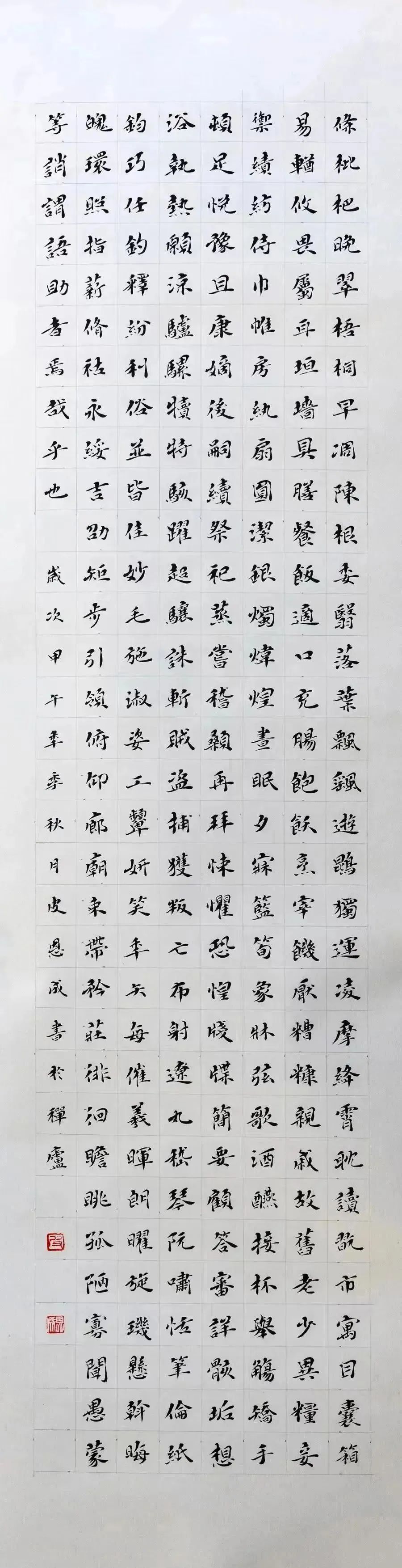 魏碑国学小楷《千字文》四扇屏之一( 138厘米X36厘米)