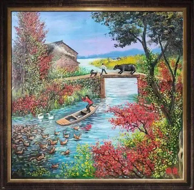 相比于山水油画作品,毛锡良老先生的众幅民间风情油画则是更加具有着审美上的大众亲和力!并且在这类题材的油画作品中,毛锡良先生也是有全面致力于对人文和地域的双重表现性,继而能让观赏者充分体会到一种与匠俗画家所截然不同的画面意识!民间乡居,情系风情,是以油画笔触为载体,又是以生活气象为生发,一幅幅极具于情感表达的民间地域油画作品,就此已然是有得到了全面的审美构建与表现升华!惬意闲适,雅俗共赏!