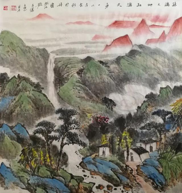 绿满大地红满天(中国画),纸本设色,2018年10月作
