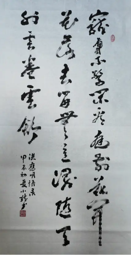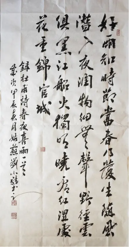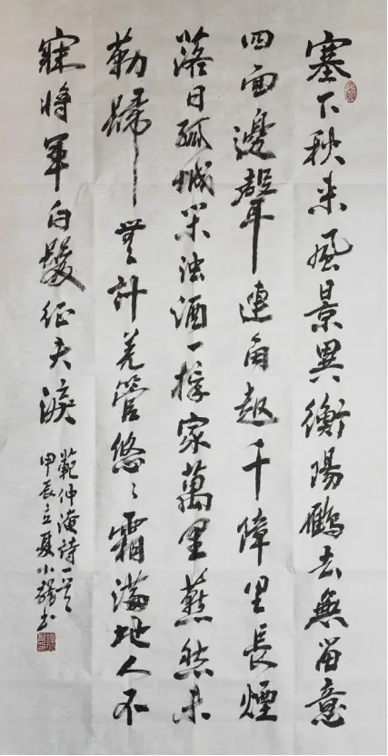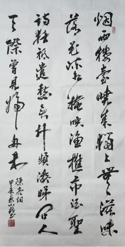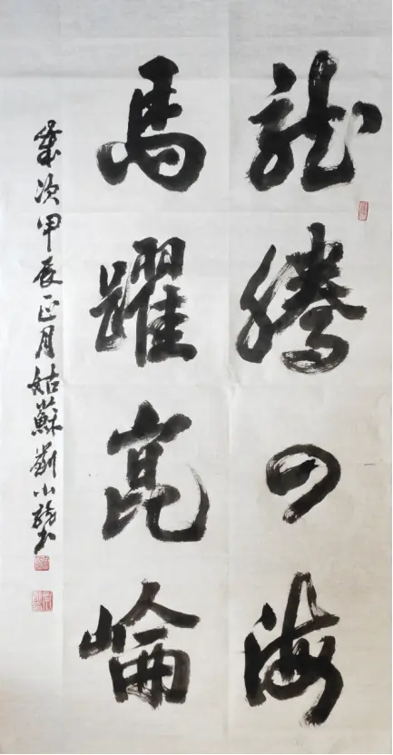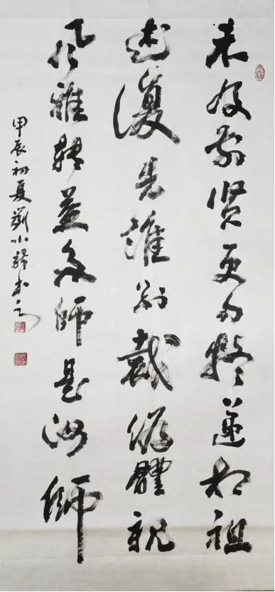 Mr. Luo Yang's comments: Mr. Liu Xiaolong's works are vigorous and powerful, with a strong momentum. His brushstrokes are concise and precise, his structure is orderly and orderly, his lines are full, he seeks perfection by closing his qi, he contains his rhyme to connect with the spirit, he endows heaven and earth with spiritual energy, and his sense of rhythm is extremely strong. He creatively achieves the integration of techniques and emotions, showcasing his skilled artistic skills and unique writing style.