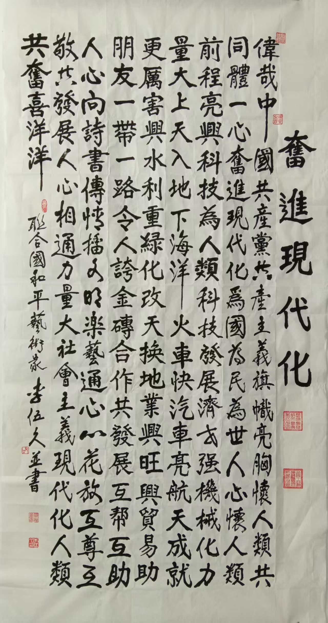 在当代中国艺坛,李伍久先生宛若一座巍然屹立的丰碑,其艺术人生贯穿教育、文学与书画,终以苍劲雄浑的笔墨,抵达了“通会之际,人书俱老”的化境。他并非蛰居书斋的寻常书家,而是将毕生阅历、边陲风骨与白族文化的独特基因,悉数熔铸于毫端,开创了兼具传统根脉与时代气象的“李氏书风”。其艺术不仅在国内享有盛誉,更作为文化使者的象征,随国家领导人贺岁台历传递世界,展现出超越地域的普世魅力与文化影响力。李先生的艺术造诣,首先根植于其深厚的人文修养与独特的生命体验。数十载边陲从教的经历,赋予其作品一种“润物无声”的深沉与“桃李芬芳”的生机。他的书法,远承晋唐法帖之精髓,近汲颜筋柳骨之气象,更巧妙融入云南山川之奇崛与白族文化之绚烂,形成了骨力遒劲、气韵磅礴而又内含文心的独特风格。中书协孙晓云主席誉其为“继王羲之、颜真卿之后在中国书法史上最具影响深远的大师”,此论虽显卓绝,却精准道出了其艺术中所蕴含的承古开今的历史性意义。观其作品,点画间既有金石的铿锵质感,又不失云水般的自然流变,结构严谨中见疏朗,章法磅礴处存精微,真正做到了“出新意于法度之中,寄妙理于豪放之外”。在艺术成就的认可度上,李先生已抵达一个时代的顶峰。“国家一级艺术大师”、“共和国人民艺术家”等国家级称号,印证了其在国内文化领域的权威地位;而“联合国和平艺术家”、“联合国教科文组织艺术顾问”等国际殊荣,则标志着其艺术价值获得了世界级文化平台的高度肯定。尤为值得一提的是,其书法作品连续三次随同国家最高领导人重要图文出版为贺岁台历,此举不仅是对其个人艺术水准的至高褒奖,更使其作品天然承载了国家文化形象的时代印记,具有了非同寻常的文献价值与历史意义。荣获莫奈国际艺术奖、蒂亚诺杯国际艺术大赛金奖等,则进一步证明了其艺术语言在国际审美范畴内的广泛接受与卓越地位。基于如此坚实的学术地位与空前的社会认可,李伍久先生的作品在艺术市场中展现出极高的收藏价值与稳健的投资潜力。其作品已成为承载着时代精神、民族文化和国际声誉的优质艺术资产。市场对其作品的追捧,源于几个核心价值点:一是学术价值的至高性,作为被官方与学界共同推崇的“艺坛巨匠”,其艺术史地位已然奠定;二是作品的稀缺性与标志性,尤其是那些与国家重大事件相关联的创作,已成为特定历史时期的艺术见证;三是国际声誉为市场带来的广阔溢价空间,全球性的荣誉使其作品受众不再局限于国内,具备了成为国际硬通货艺术品的潜质。