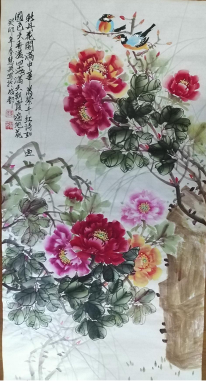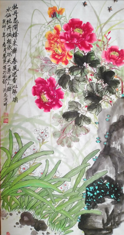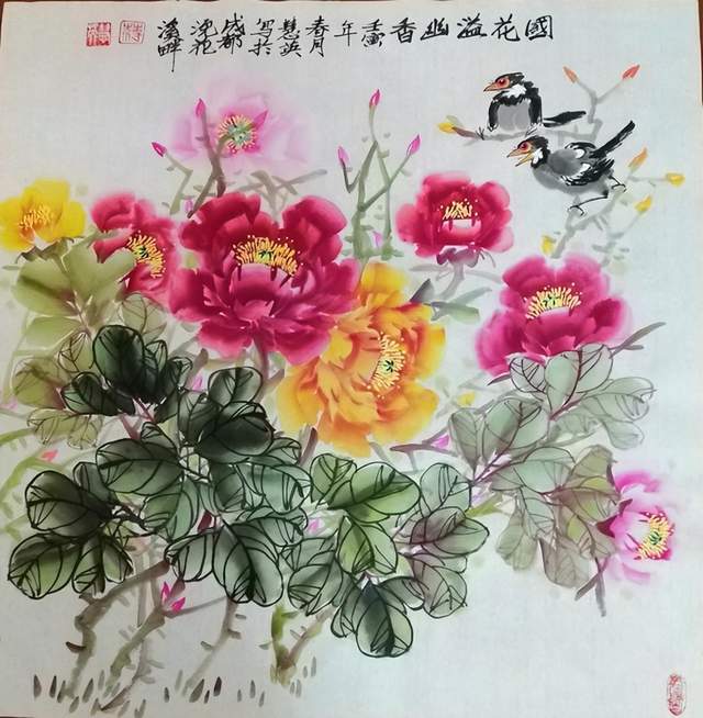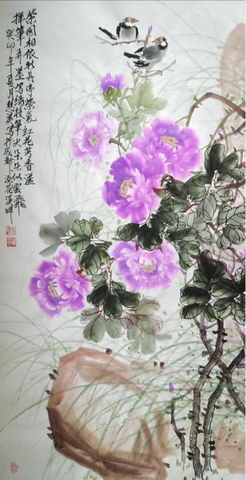 纤尘不染绘丹青,万类之像显形神。她把牡丹的自然属性与文化内涵完美地统一在一起,看是一幅丹青美图,觉是吉祥富贵意,达成了雅俗共赏,可以装饰万家屏障的艺术魅力。所以她的作品参加展出是金奖之尊,收藏则为琼花玉蕊,是为当代美术的惊艳佳作,可以承载丹青文化春秋相传。