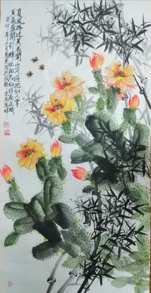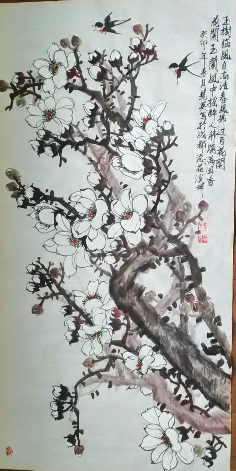 2001年,作品《国色牡丹含苞放》参加中国近现代书画家作品展,在北京中国历史博物馆展出,并入选画册;