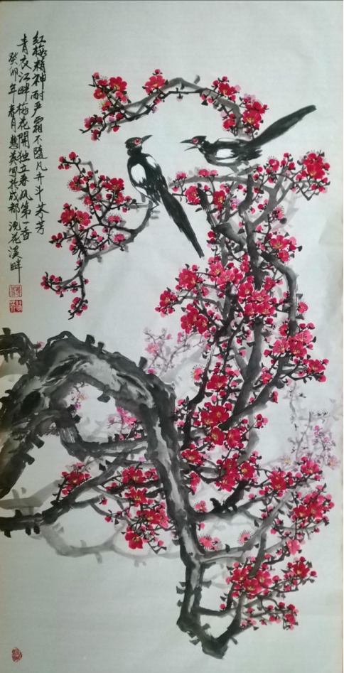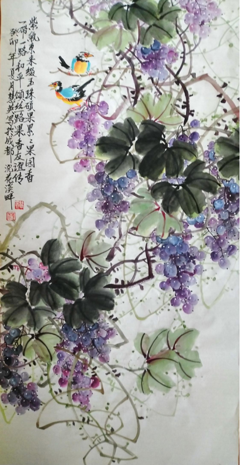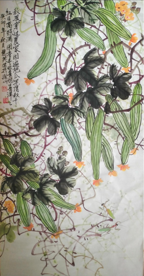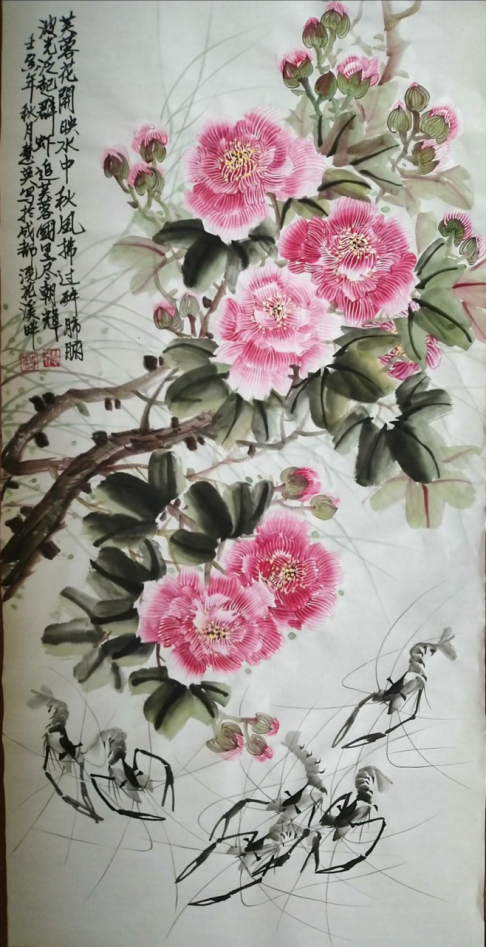 还有《秋风拂过海棠红》这里面既没有涂得乱,也没有抹的浊,干干净净画天朗,清水濯洗绘气清,秋风秋韵,扑面盈心,如读过的一首唐诗,如诵过的一首宋词,越看越有滋味,极其耐读。作为一名女画家,蒋慧英女士为当代画坛奉献了非常令人陶醉的丹青佳作,让人在惠风和畅的气氛里游目骋怀,足以极视听之娱!