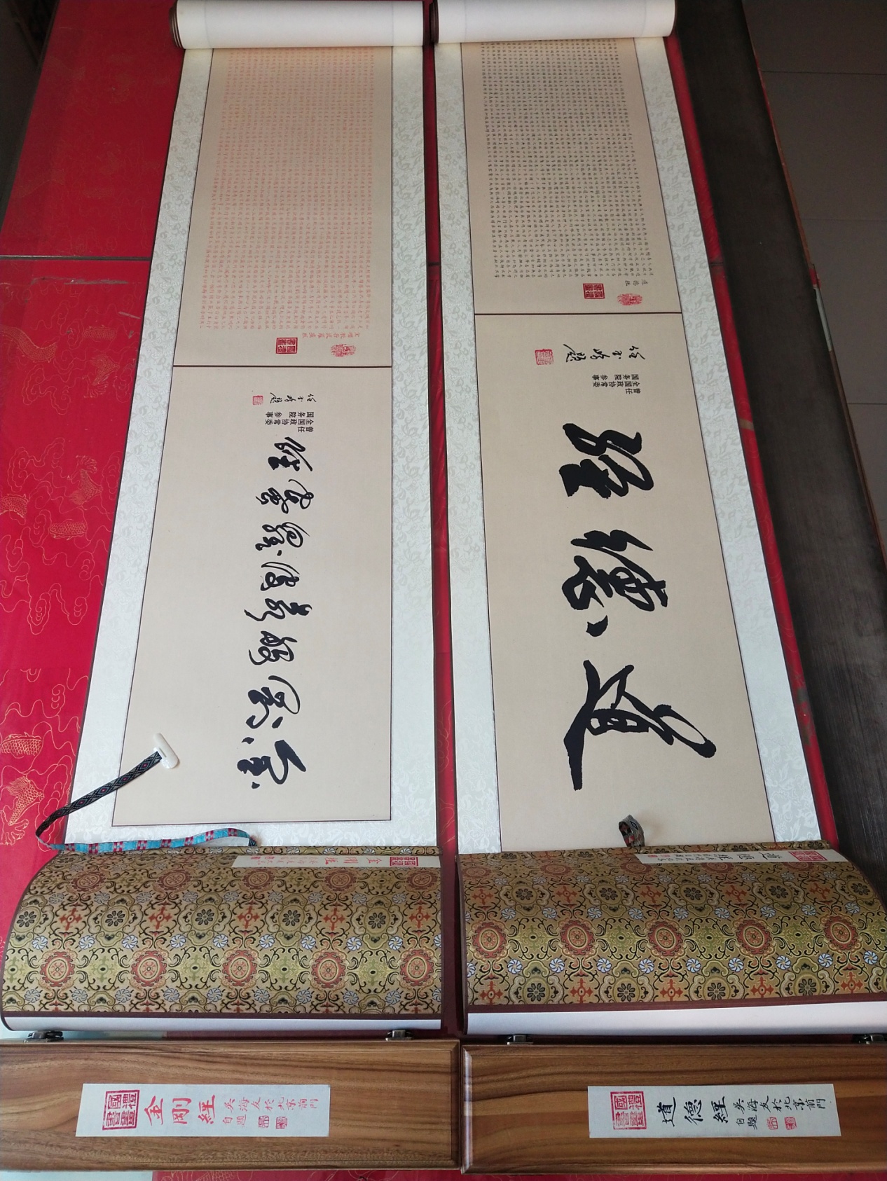 吴海友院长每字8毫米小楷朱砂墨《金刚经》和《道德经》(画心每幅35厘米x2.2米)其小楷代表作朱砂墨《金刚经》《道德经》应邀参加2022年北京传世水墨国际拍卖有限公司全国秋季拍卖活动并排拍出36万元。并在雅昌拍卖官网公布拍卖结果。